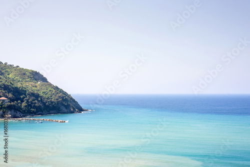 Fototapeta premium Beautiful daylight view to green mountains of Levanto, Italy. Cinque Terre...