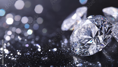 © wolfelarry, Obraz premium Beautiful dazzling diamonds on dark shiny background, close up