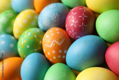 © New Africa, Obraz premium Beautiful decorated Easter eggs as background, closeup