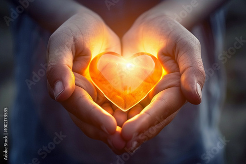 © Olegarx525, Fototapeta premium Beautiful decorative heart in strong human hands