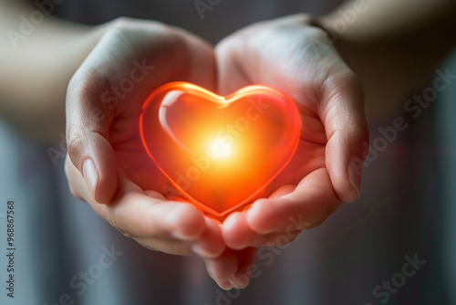 © Olegarx525, Fototapeta premium Beautiful decorative heart in strong human hands