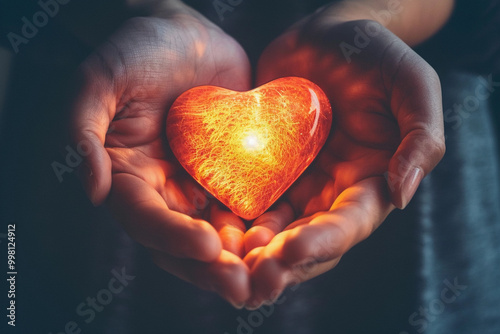 © Olegarx525, Fototapeta premium Beautiful decorative heart in strong human hands