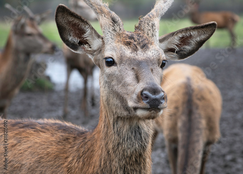 © renatados, Fototapeta premium Beautiful deer close up. Wild animals. Portrait of deer