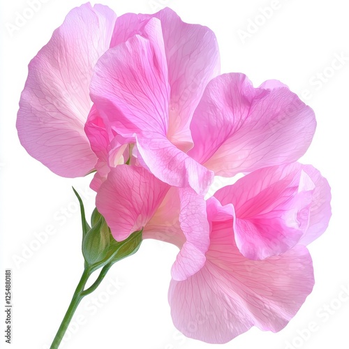Obraz premium Beautiful delicate pink sweet pea flowers with intricate petal textures on soft white background