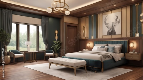 © mustapha, Naklejka premium beautiful design interior of a bedroom with sofa and carpet