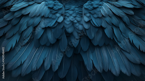 © Narayana, Fototapeta premium Beautiful detailed blue feather wings in a dark background