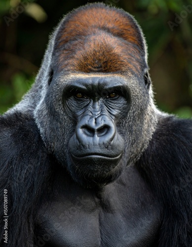 © MHC_Design, Obraz premium beautiful detailed close up image of a silver back gorilla looking at camera