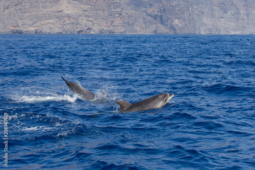 Fototapeta premium Beautiful dolphin swimming. Dolphin jumping above blue water in the Ocean