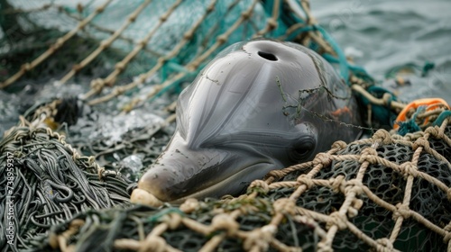 © Marco, Obraz premium beautiful dolphin trapped between ropes