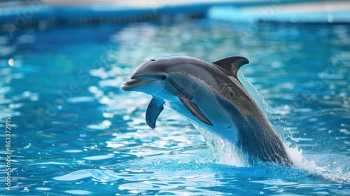 Naklejka premium Beautiful dolphins swimming. Dolphin jumping above blue water