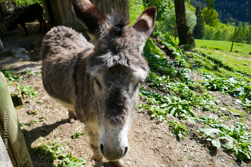 Fototapeta premium Beautiful donkey in the zoo. Donkeys on a farm in Austria.