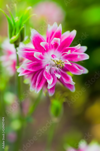 Obraz premium Beautiful double flowering pink colombine blossom.