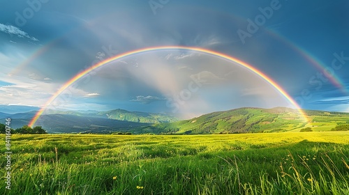 Obraz premium Beautiful double rainbow over a scenic landscape
