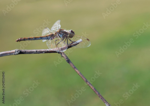 © Arrows, Fototapeta premium Beautiful dragonfly sits on a dry branch on a background of grass