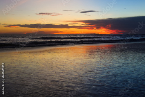 Fototapeta premium beautiful dramatic landscape of sunset on the sea beach