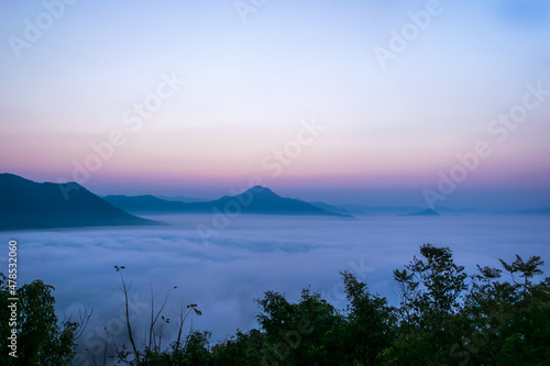 © jumnong, Fototapeta premium Beautiful dramatic view sea of ​​mist in morning.