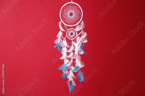 © New Africa, Obraz premium Beautiful dream catcher hanging on red background
