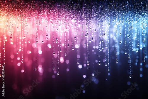Fototapeta premium Beautiful droplets of water suspended in colorful hues, creating a mesmerizing visual display that enhances any atmospheric setting.
