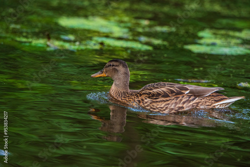 © shymar27, Fototapeta premium Beautiful ducks swim in the autumn pond.