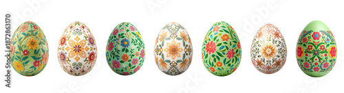 © Lucky Render, Fototapeta premium Beautiful Easter egg with a floral pattern isolated on transparent background