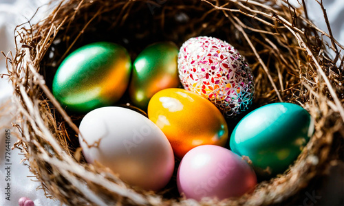 Obraz premium Beautiful Easter eggs for the holiday. Selective focus.
