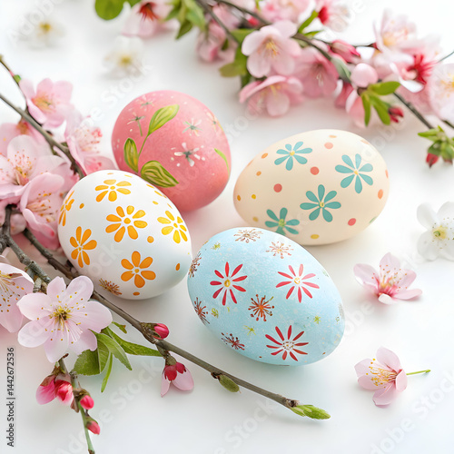 Fototapeta premium Beautiful Easter Eggs with Spring Blossoms: Holiday Decoration Image