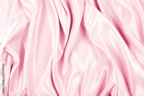 © Sindija, Obraz premium Beautiful elegant wavy light pink satin silk luxury cloth fabric texture, abstract background design. Copy space
