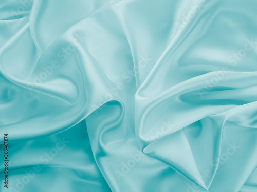 Fototapeta premium Beautiful elegant wavy turquoise silk or satin luxury cloth fabric texture,...