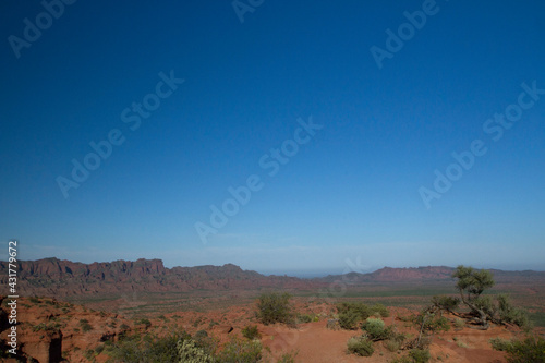© Gonzalo, Fototapeta premium Beautiful emptiness. The arid desert, red sand and mountains under a deep blue sky.