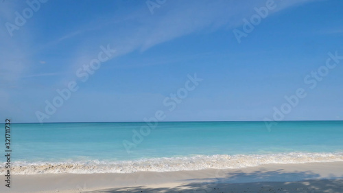 © Олег Фадеев, Fototapeta premium Beautiful empty beach in Tanzania with blue water on a sunny day with no clouds