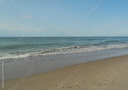 Obraz premium Beautiful empty sandy beach landscape with calm waves