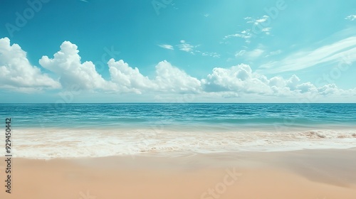 © Thanthara, Fototapeta premium Beautiful empty tropical beach and sea landscape background.