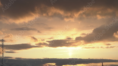 Fototapeta premium Beautiful evening blue sky at sunset with flaming bright light clouds. A warm...