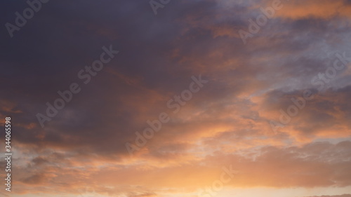 Fototapeta premium Beautiful evening blue sky at sunset with flaming bright light clouds. A warm...