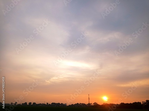© Soxlam, Obraz premium beautiful evening sunset with yellow sky