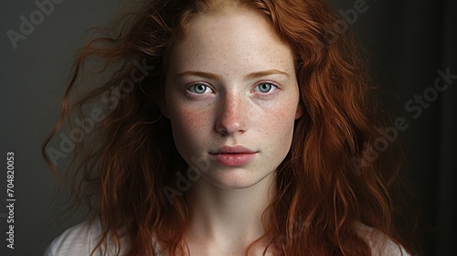 © Montalumirock, Fototapeta premium Beautiful face of young white woman and freckles sensitive skin