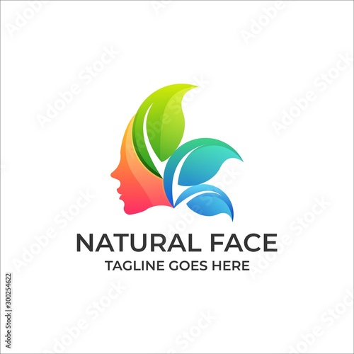 Fototapeta premium Beautiful Face with Leaf Colorful Vector Template