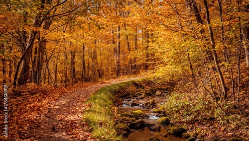 © The 2R Artificiality, Obraz premium Beautiful Fall Trail Lined with Yellow Leaves