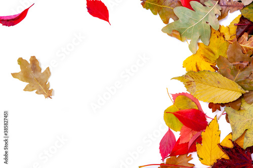 © glebchik, Obraz premium Beautiful fallen leaves lie on a white background