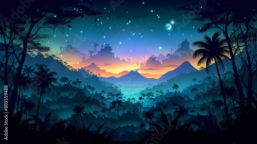 © imtde.sign, Naklejka premium Beautiful fantasy tropical in night skies with tree, and shining moon in beach view, night sky with moonlight between forest