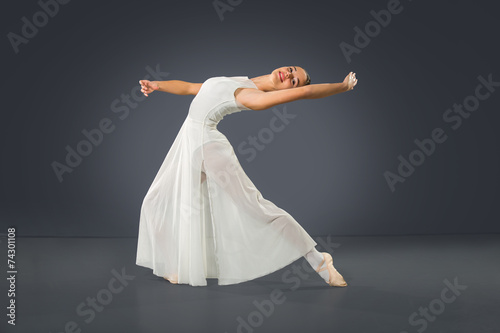 © Mediteraneo, Naklejka premium Beautiful female ballet dancer on a grey background.