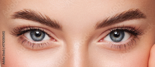 Obraz premium Beautiful female eyes with long eyelashes. Eyelash extensions. Makeup,...