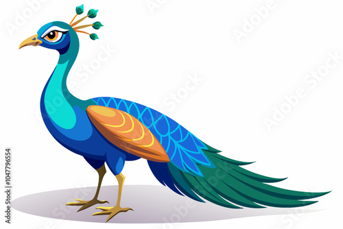 © Jhanto, Fototapeta premium Beautiful female peacock. rendering shadow over white