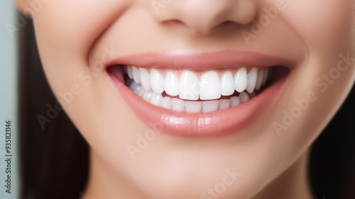 © mehaniq41, Fototapeta premium Beautiful female smile after teeth whitening procedure. Dental care. Dentistry concept. Neural network ai generated art