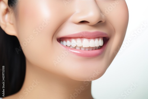 Obraz premium Beautiful female smile after teeth whitening procedure, Generative AI