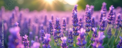 Naklejka premium Beautiful field of lavender plants in full bloom, landscape, purple, lavender...
