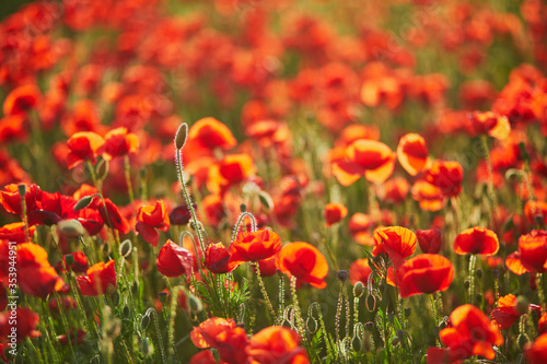 © Ekaterina Pokrovsky, Obraz premium Beautiful field of red blooming poppies
