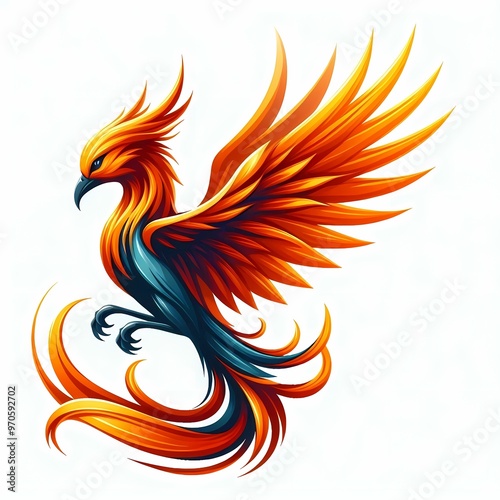 © Md Hasan, Fototapeta premium Beautiful Fire Phoenix bird flying vector illustration isolated on a white background