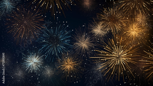 © cai, Naklejka premium Beautiful fireworks background at night for holiday decoration