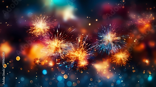 Fototapeta premium Beautiful fireworks background at night for holiday decoration